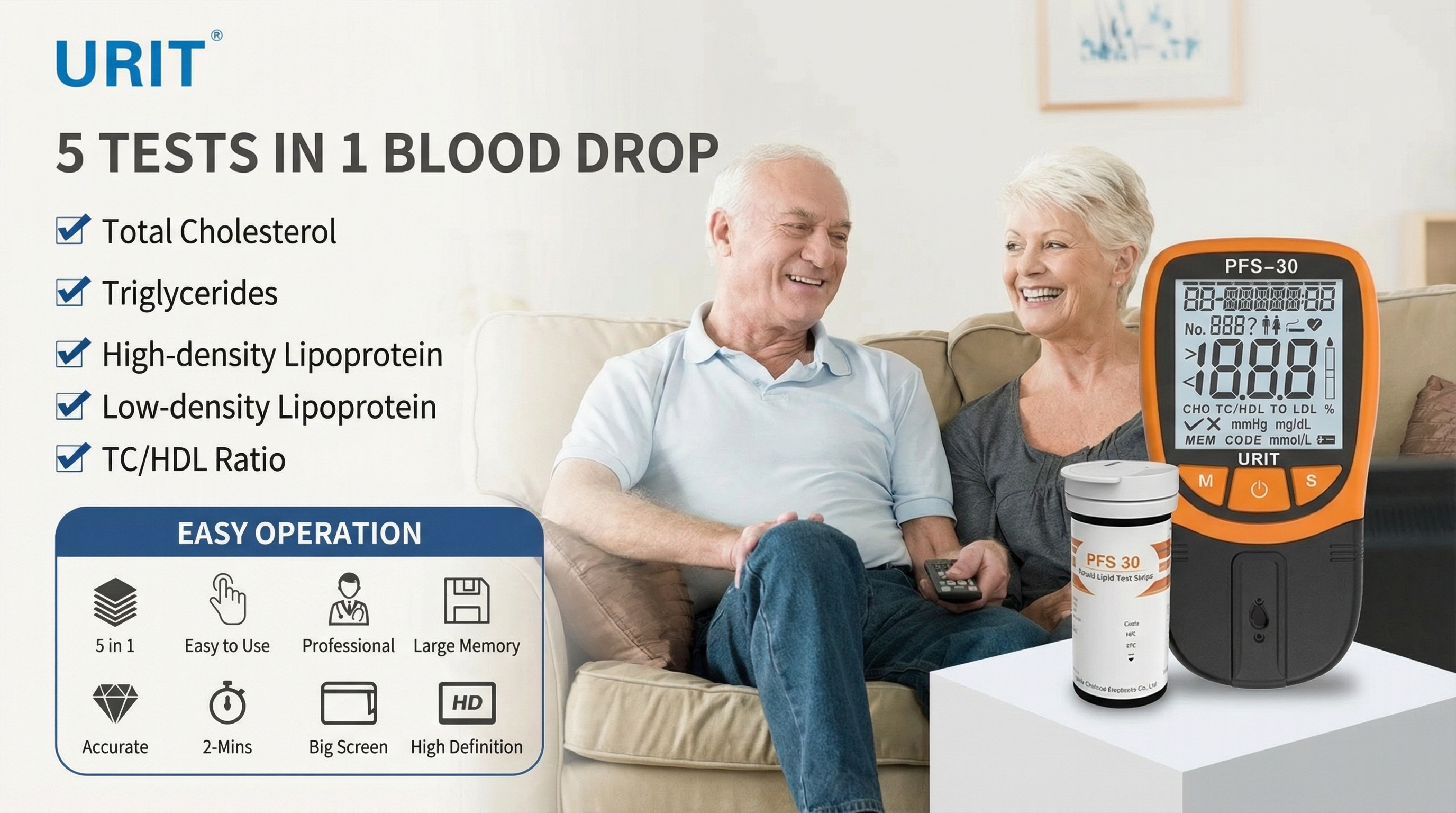 PFS-30A Professional 5-in-1 Home Cholesterol Test Kit – Clinical-Grade Blood Lipid Analyzer – Check TC, TG, HDL, LDL in 120s – Includes 10 Strips & 24-Month Extended Warranty